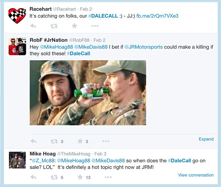 So we gave them their wish, just in time for hunting season. Dale announced it on Twitter and promoted the Dale Call on the back of his NASCAR.